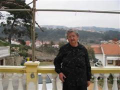 Marija Dudić, rođ. Krstinić. U pozadini brdo na kome je bila spaljena kuća